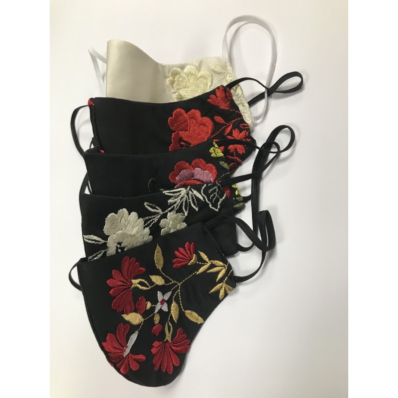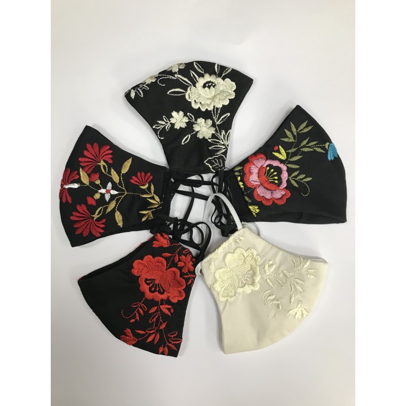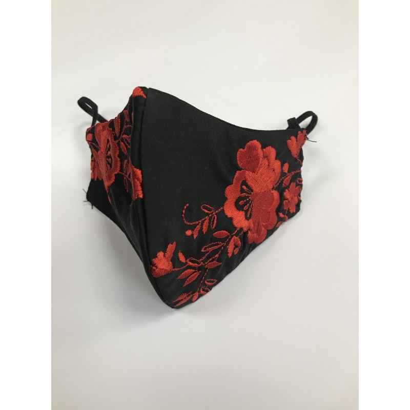 Mascarilla bordada, de tela, lavable y con filtro. Elige tu mascarilla negra con bordado en rojo, blanco o colores, según tus gustos.