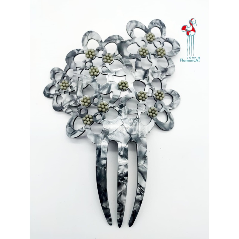 Tenemos en el almacén peinetas de todos los colores y muchos modelos, es imposible fotografiar. Si necesitan peinetas, manden un whats app al número que pone debajo y le mandamos modelos en el color que nos solicite, estaremos encantados en ayudarle con los complementos para su traje de flamenca.