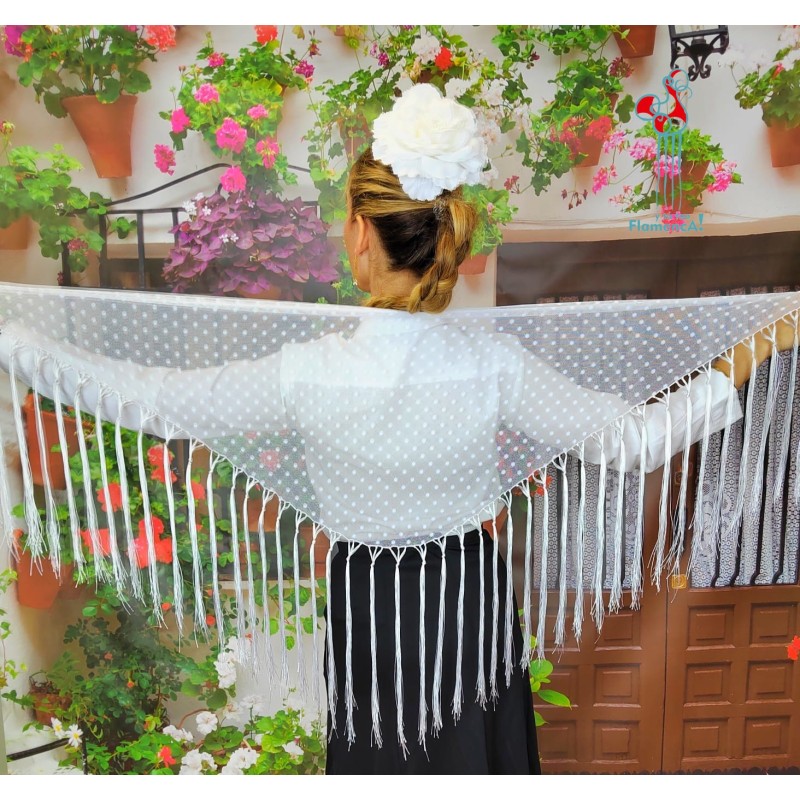Pico de flamenca de plumeti blanco. Las medidas son 140 x 50 cm aproximadamente.
