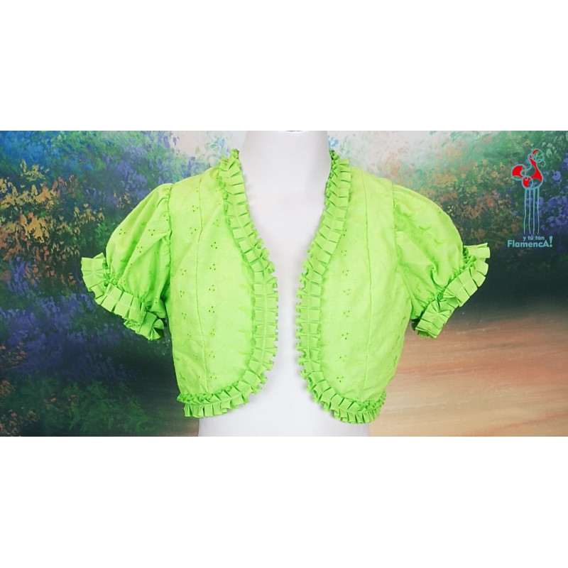 Bolero de flamenco para niña talla 12 con manga corta, verde