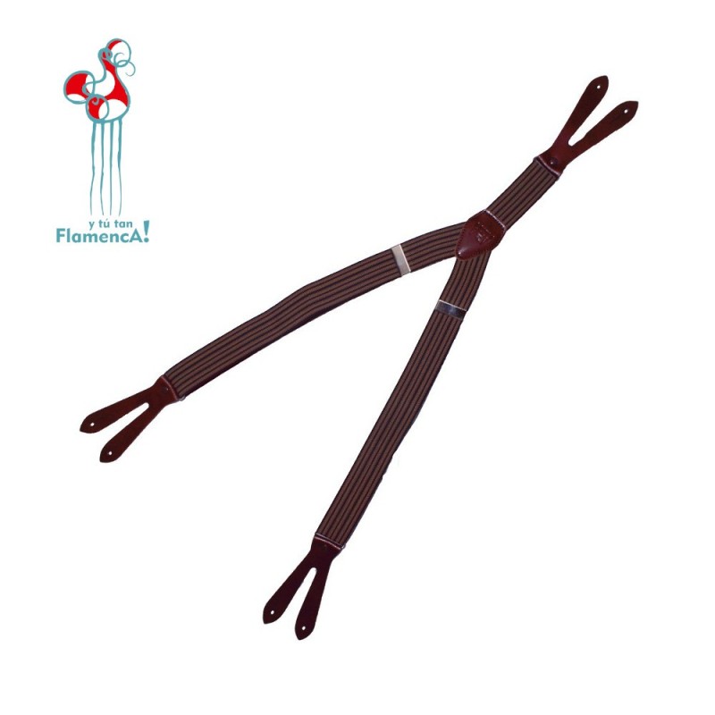 Tirantes de fabricación propia, con goma de gran calidad y rematados en piel de becerro de primera. La terminación es para abrochar a botones, estos tirantes son para calzona de traje de luces, calzona campera o falda campera. Los tirantes son hechos por nuestros guarnicionemos en Salamanca. Para saber su medida, tome un metro, necesitamos que nos de el largo del tirante total, cuanto quiere que mida, marque en el despegable Los tirantes traen ojales para poder cambiar el largo del tirante.