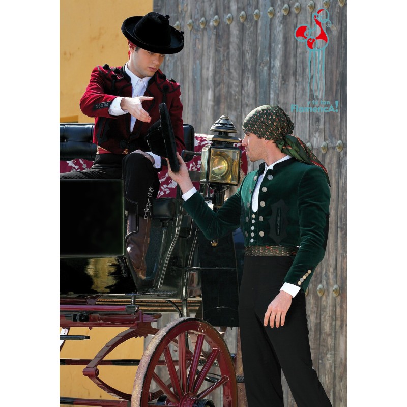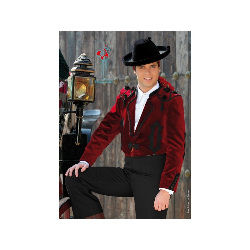 Chaqueta paseo goyesca terciopelo burdeos y calzona con caereles negra elástica