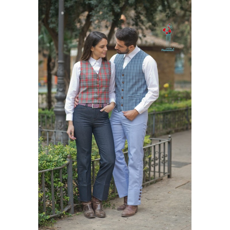 Traje campero para mujer completo, con chaquetilla, chaleco y calzona de caireles. Los caireles se compran por separado. Hacemos precios para grupos.