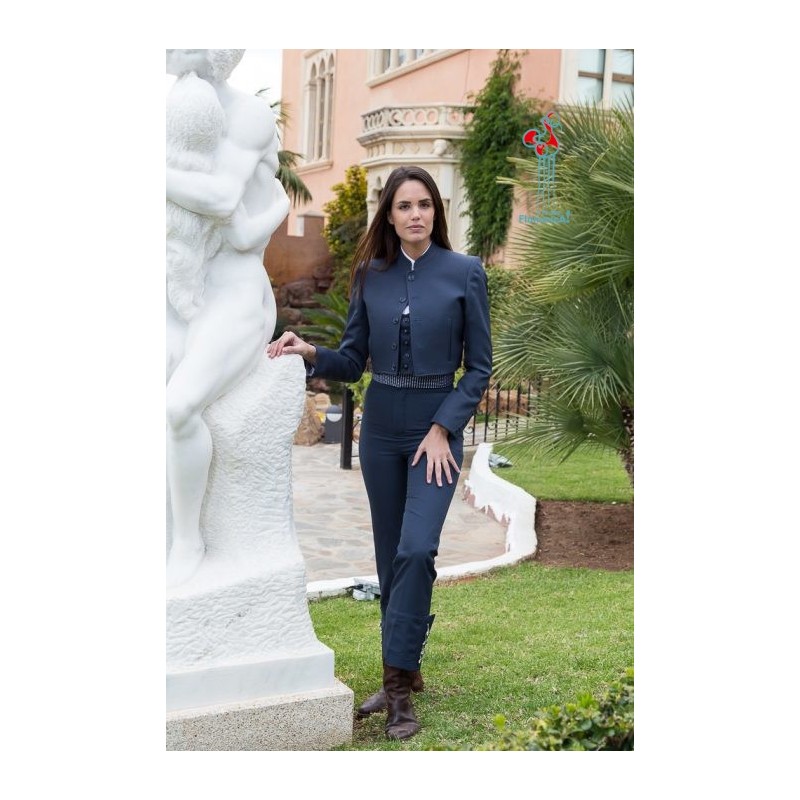 Traje campero para mujer completo, con chaquetilla, chaleco y falda modelo amazona elástica. Hacemos precios para grupos.