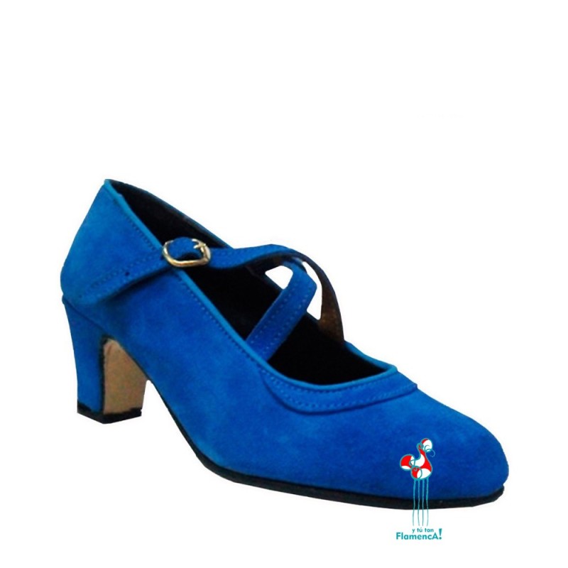 Zapatos de piel tipo boxcal color azul eléctrico con tacón de 5 cm, con puntas, se puede fabricar con una o dos trabillas o cruzadas. La que más sujeta al pie es de una trabilla.