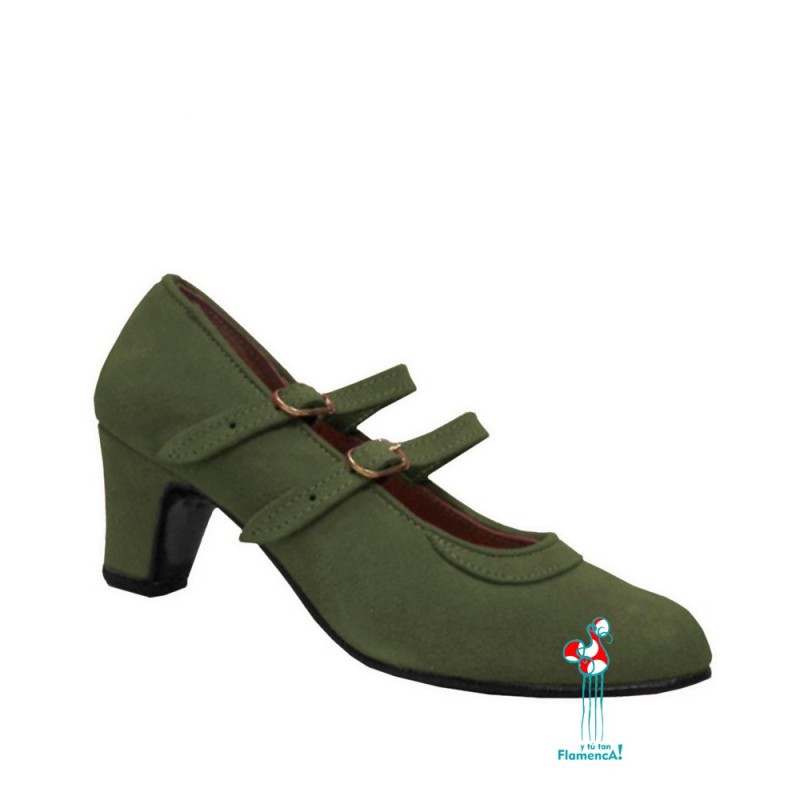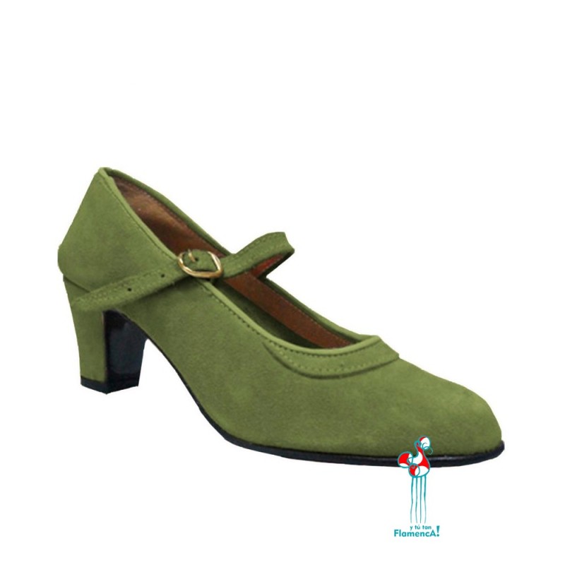 Zapatos de piel tipo boxcal color verde militar con tacón de 5 cm, con puntas, se puede fabricar con una o dos trabillas o cruzadas. La que más sujeta al pie es de una trabilla.